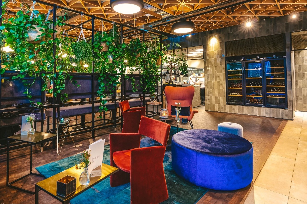 After an active day in Amsterdam you can enjoy a delicious dinner in the stylish hotel restaurant, with its open kitchen and fantastic view of the harbor of IJburg.